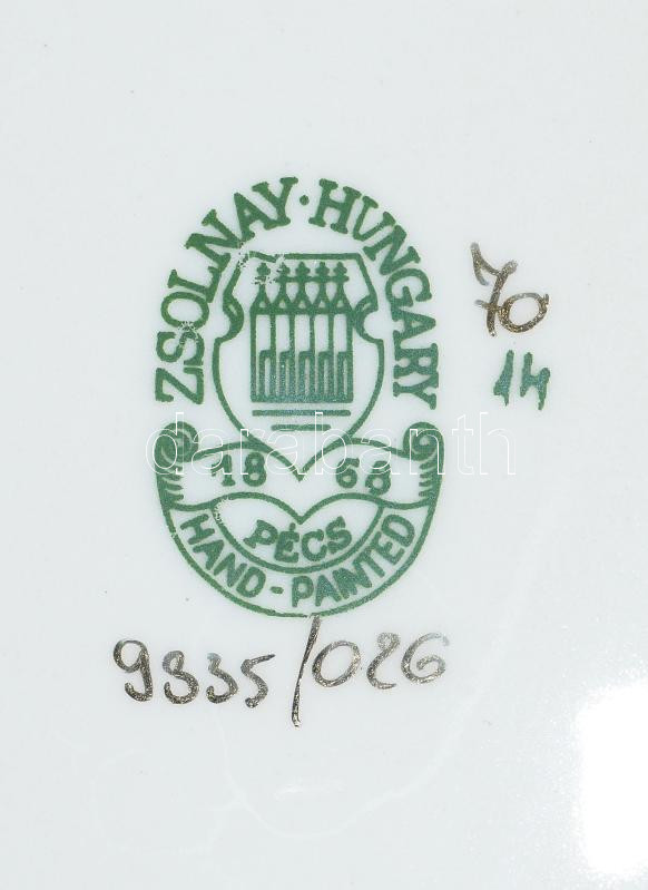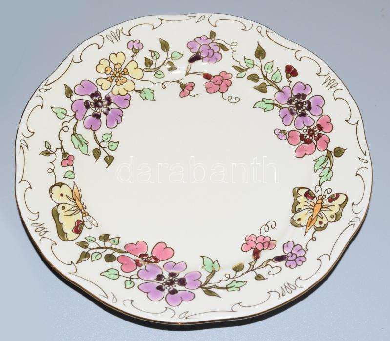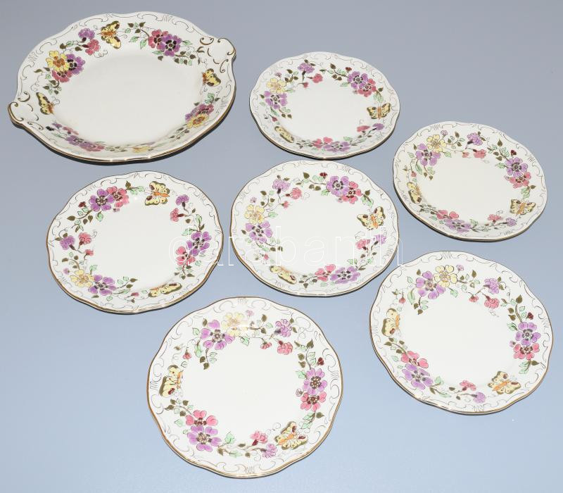 Leírás: Zsolnay pillangó mintás süteményes készlet. Hat személyes. Kézzel festett, jelzett, hibátlan