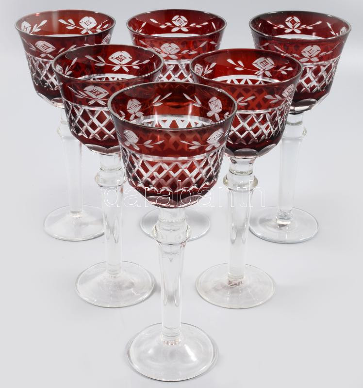 Leírás: Dúsan csiszolt kristály vörös borospohár szett, 6 darab, original dobozban, hibátlan, m: 19,5 cm