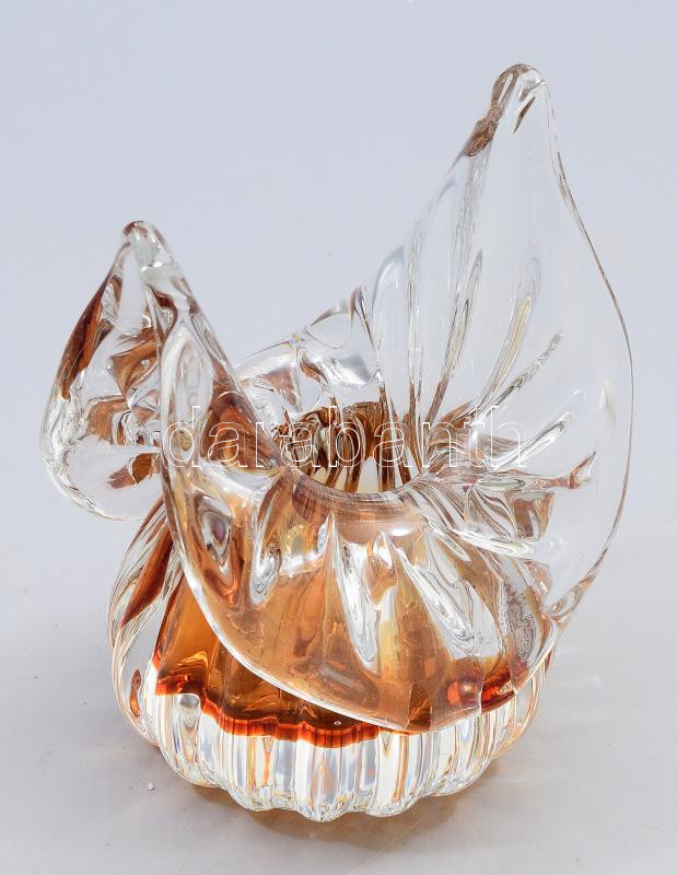Leírás: Murano részben borostyán színezésű váza, jelzés nélkül, alján karcokkal, m: 14,5 cm