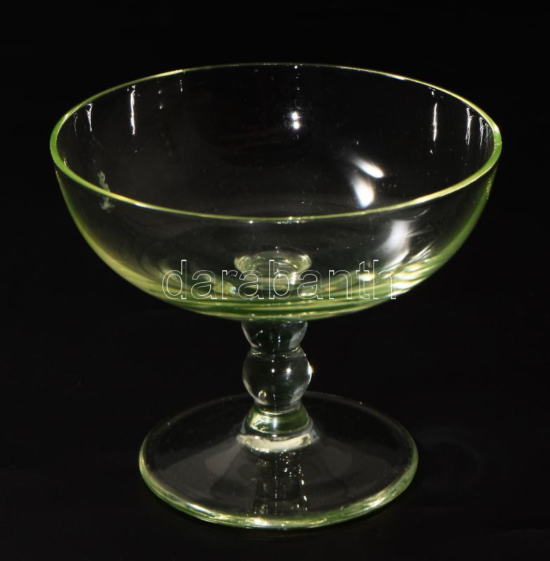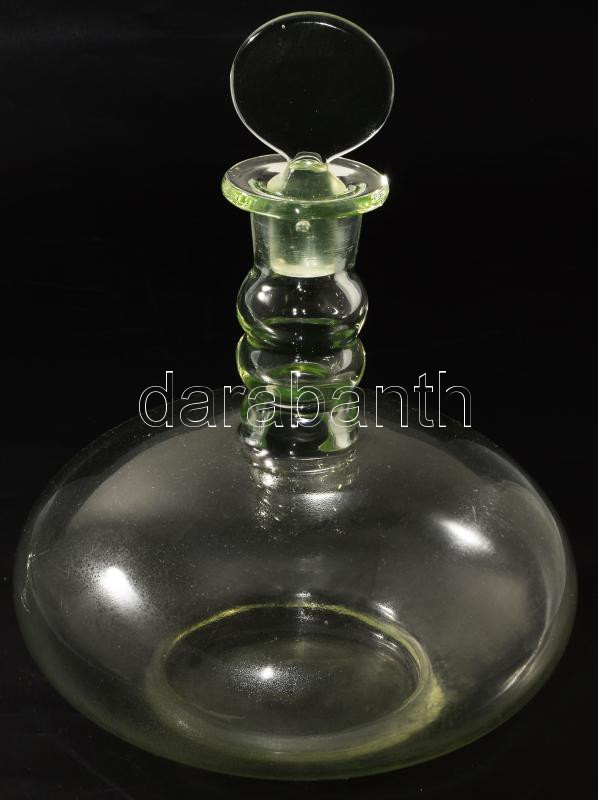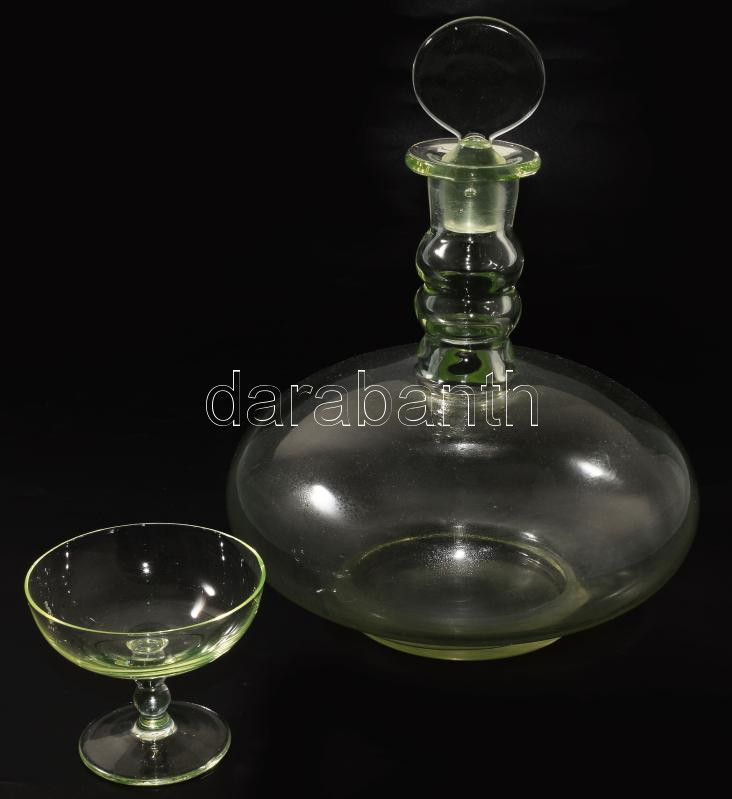 Leírás: cca 1910 Uránnal színezett dugós italos üveg és egy pohár, poháron kis pattanással, m: 6-20,5 cm