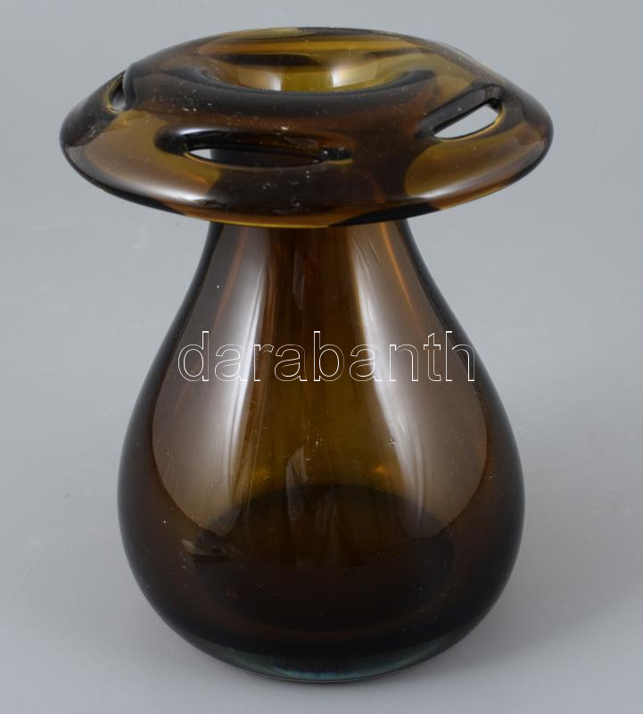 Leírás: cca 1950/60 mid-century anyagában színezett gombaváza, szakított üveg, jelzés nélkül, hibátlan, m: 17,5 cm