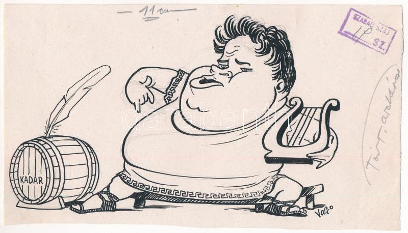 Victor Vashi, Kálmán Viktor (1911-1990): Parragi György és Kádár (politikai karikatúra). Tus, ceruza, papír. Jelezve jobbra lent. Szabad Száj bélyegzőjével. 12x21,5 cm