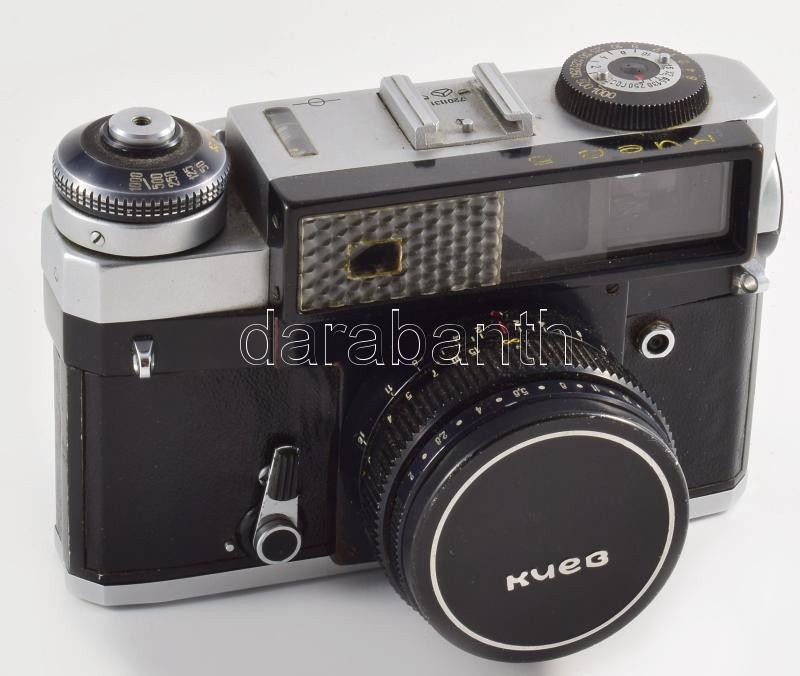 cca 1970 Kiev-5 szovjet fényképezőgép, Jupiter-8 NB 52mm f/2 objektívv... https://www.darabanth.com/hu/508-Gyorsarveres/508.0/Fotomuveszet/Fenykepezogepek-kamerak-kellekek~70/cca-1970-Kiev-5-szovjet-fenykepezogep-Jupiter-8-NB-52mm-f2-objektivvel-sapkaval-kis-kopas~II3440159
