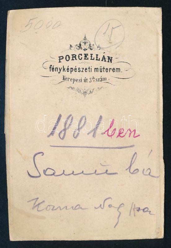 1881 Elegáns úr (,,Samu bá") portréja, vizitkártya, ,,Porcellán&q... https://www.darabanth.com/hu/508-Gyorsarveres/508.0/Fotomuveszet/Foto~683/1881-Elegans-ur-Samu-ba-portreja-vizitkartya-Porcellan-fenykepeszeti-muterem-Bp~II3435725