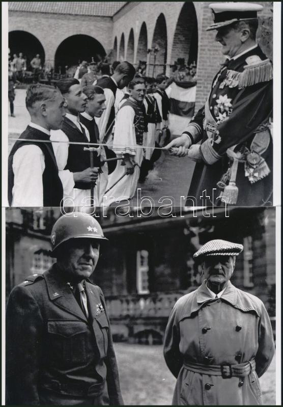 1937 Horthy Miklós kormányzó Székesfehérváron, az ősi koronázó városban tartott vitézzé avatáson; a másik felvételen már amerikai fogságban (München, 1945), 2 db modern nagyítás, jelzés nélkül, 15x21 cm