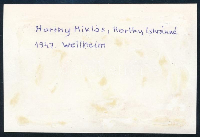 1947 Horthy Miklós (1868-1957), Horthy Miklósné Purgly Magdolna (1881-... https://www.darabanth.com/hu/508-Gyorsarveres/508.0/Fotomuveszet/Foto~683/1947-Horthy-Miklos-1868-1957-Horthy-Miklosne-Purgly-Magdolna-1881-1959-es-ozv-Horthy-Ist~II3402918