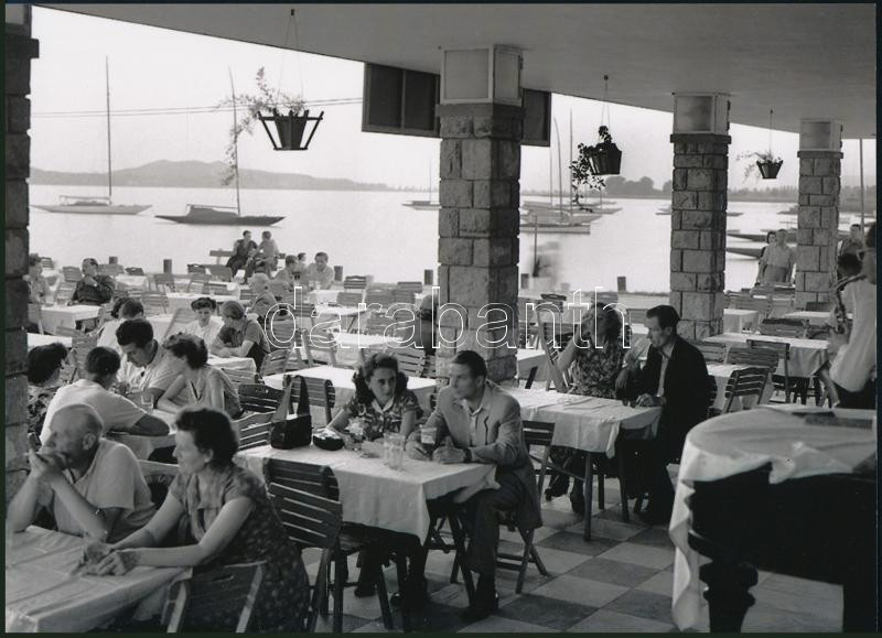 Leírás: 1954 Vadas Ernő (1899-1962) budapesti fotóművész és fotóriporter felvétele (Balatonfüredi vendéglő), 1 db modern nagyítás, jelzés nélkül, 15x21 cm