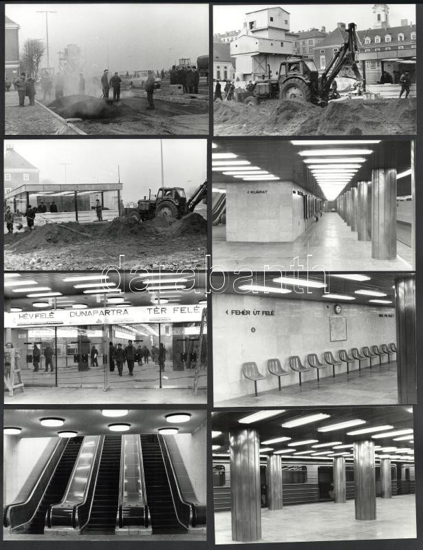 1972 Budapest, a Batthyány téri metró állomás felszíni építése és alul a belsőépítészeti látványa az átadás előtt, néhány kép datált, 13 db vintage, ezüstzselatinos fotó, 9x14 cm
