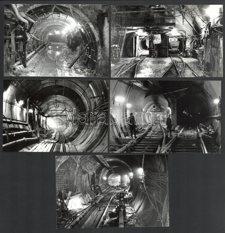 1972 és 1976 között, a felszín alatt készült felvételek, a budapesti metróépítésről, minden kép datált, néhány feliratozott és/vagy jelzett, 13 db vintage, ezüstzselatinos fotó, 9x14 cm