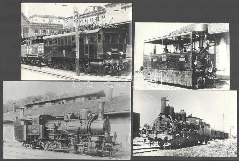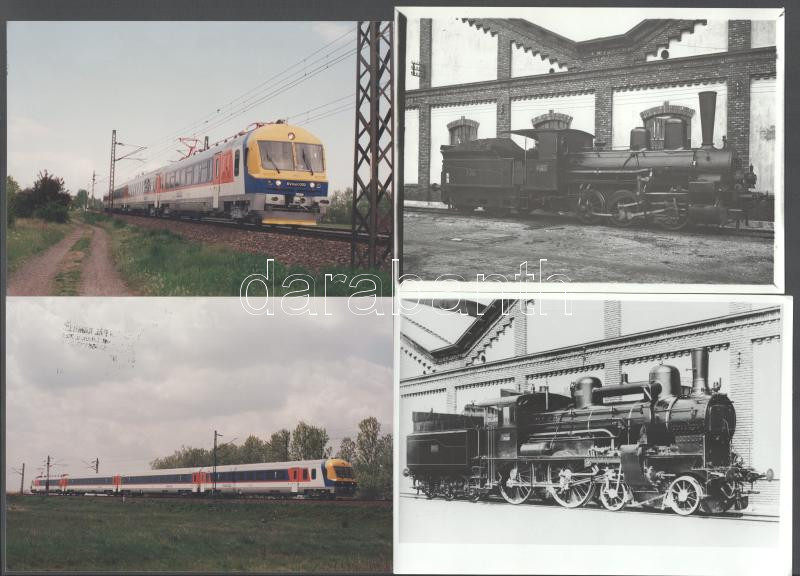 Vonatok, mozdonyok, különböző korokban készült különböző korú vasúti járművekről készített fotók 20x14 cm méretig. / Photos of different types of locomotives and railways from various eras
