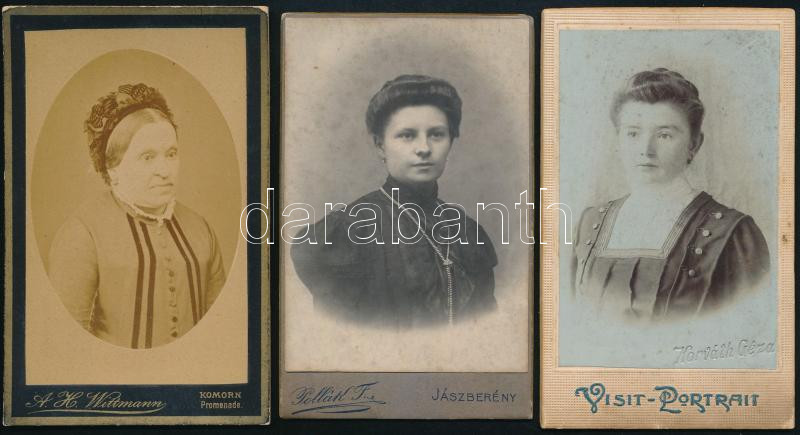 cca 1890-1910 3 db hölgyeket ábrázoló keményhátú fotó, 10,×6,5 cm https://www.darabanth.com/hu/508-Gyorsarveres/508.0/Fotomuveszet/Foto~683/cca-1890-1910-3-db-holgyeket-abrazolo-kemenyhatu-foto-10-C3976-5-cm~II3435944