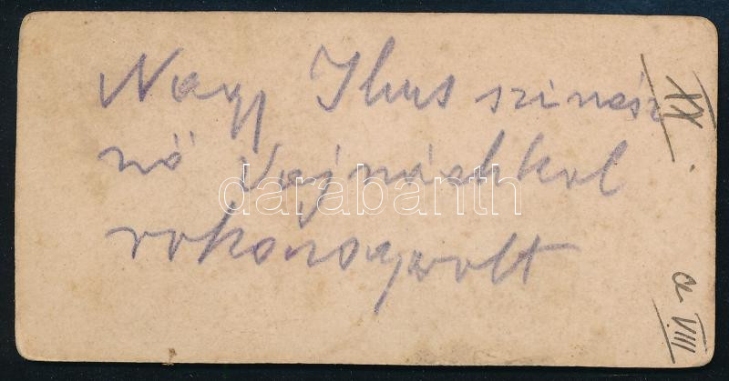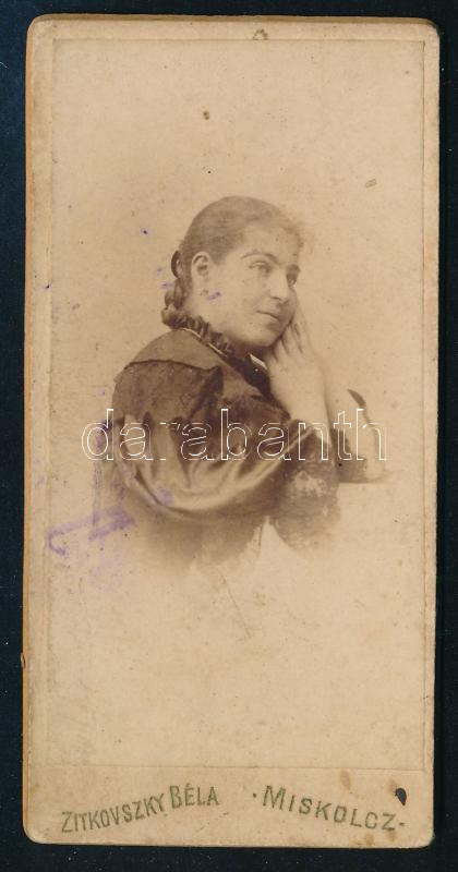 cca 1890 Hölgy portréja (a hátoldali felirat szerint Nagy Ilus színésznő), mignon fotó Zitkovszky Béla (1867-1930) miskolci műterméből, 8x4 cm (Ritka!)