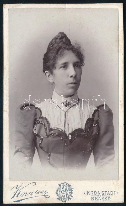cca 1900-1910 Elegáns, divatos öltözetű hölgy portréja, vizitkártya Kn... https://www.darabanth.com/hu/508-Gyorsarveres/508.0/Fotomuveszet/Foto~683/cca-1900-1910-Elegans-divatos-oltozetu-holgy-portreja-vizitkartya-Knauer-Gyula-brassoi-Kr~II3435710