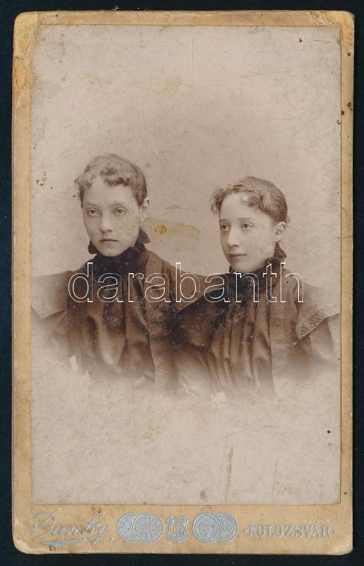 cca 1900 Két fiatal lány portréja, vizitkártya a Dunky fivérek kolozsv... https://www.darabanth.com/hu/508-Gyorsarveres/508.0/Fotomuveszet/Foto~683/cca-1900-Ket-fiatal-lany-portreja-vizitkartya-a-Dunky-fiverek-kolozsvari-mutermebol-kissC3~II3435681