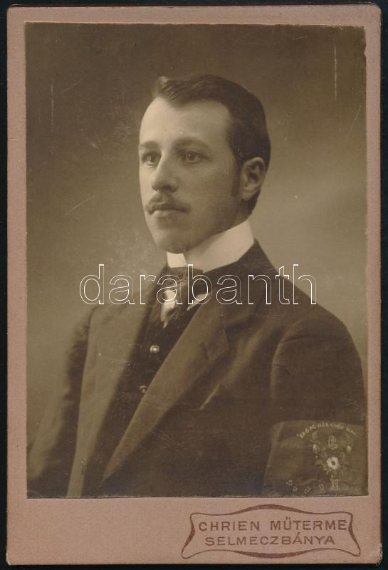 cca 1910 Férfiportré, keményhátú fotó Chrien selmecbányai műterméből, ... https://www.darabanth.com/hu/508-Gyorsarveres/508.0/Fotomuveszet/Foto~683/cca-1910-Ferfiportre-kemenyhatu-foto-Chrien-selmecbanyai-mutermebol-10-5C3976-5-cm~II3436027