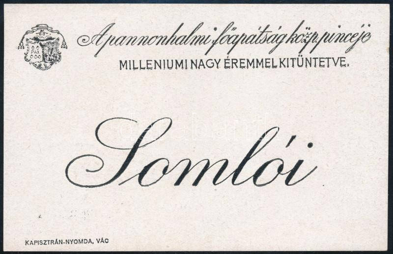 Leírás: A pannonhalmi főapátság közp. pincéje, Somlói borcímke, Vác, Kapisztrán-ny., 8x13 cm