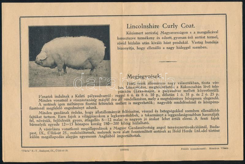 cca 1920-1930 Magyar Gazdaszövetség angol tenyészsertés-akciója, Angli... https://www.darabanth.com/hu/508-Gyorsarveres/508.0/Fotomuveszet/Reklam~684/cca-1920-1930-Magyar-Gazdaszovetseg-angol-tenyeszsertes-akcioja-Angliabol-importalt-sertes~II3440929