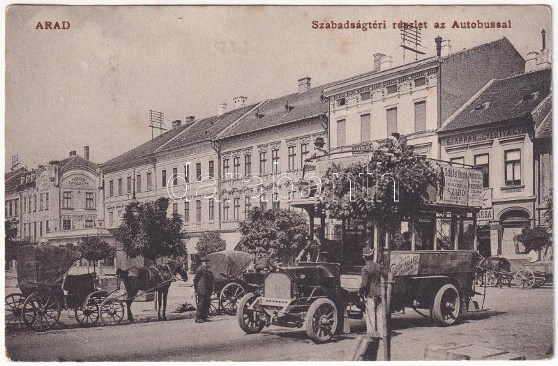 1909 Arad, Szabadság tér, autóbusz üzletek reklámjaival, szappan és gy... https://www.darabanth.com/hu/508-Gyorsarveres/508.0/Kepeslapok/Erdely~582/1909-Arad-Szabadsag-ter-autobusz-uzletek-reklamjaival-szappan-es-gyertyagyar-Rozsnyay-gyC3~II2869011