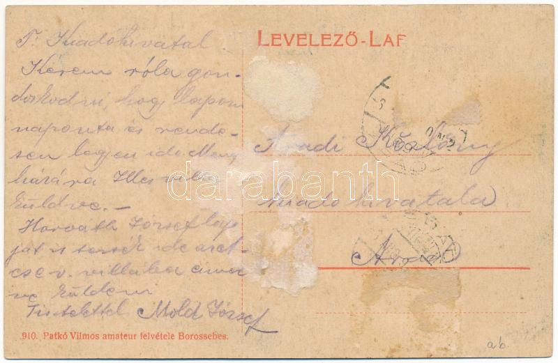 Leírás: Menyháza, Monyásza, Moneasa; vasútállomás, gőzmozdony, vonat. Patkó Vilmos amateur felvétele (Borossebes) 910. (W.L. ?) / railway station, locomotive, train (ragasztónyom / glue marks)