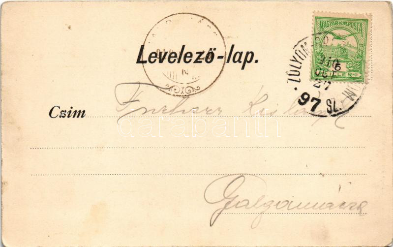 Leírás: 1910 Hermánd, Hermanecz, Harmanec; papírgyár, vasúti híd. Ivánszky Elek kiadása, szecessziós-virágos keret / paper mill, paper factory, railway bridge. Art Nouveau, floral frame (kopott sarkak / worn corners)
