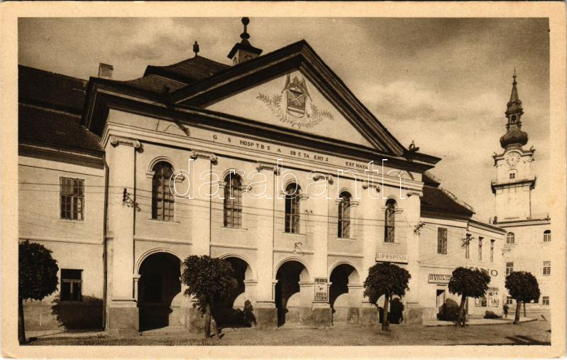 Késmárk, Kezmarok; Hlavné námestie / Fő tér, szálloda és étterem, L. Pospisil üzlete. Rudolf Károlyi kiadása / main square, hotel and restaurant, shops (EK)