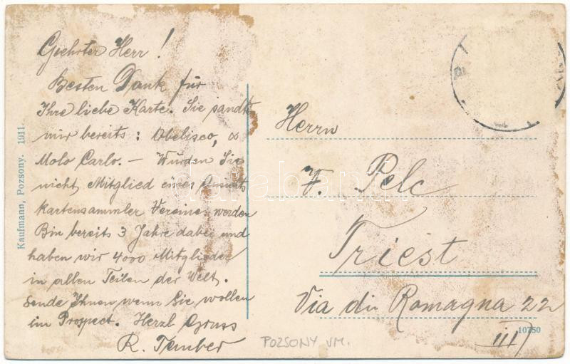 Leírás: Pozsony, Pressburg, Bratislava; Mihály kapu utca, üzletek. Kaufmann kiadása / street, shops (ázott / wet damage)