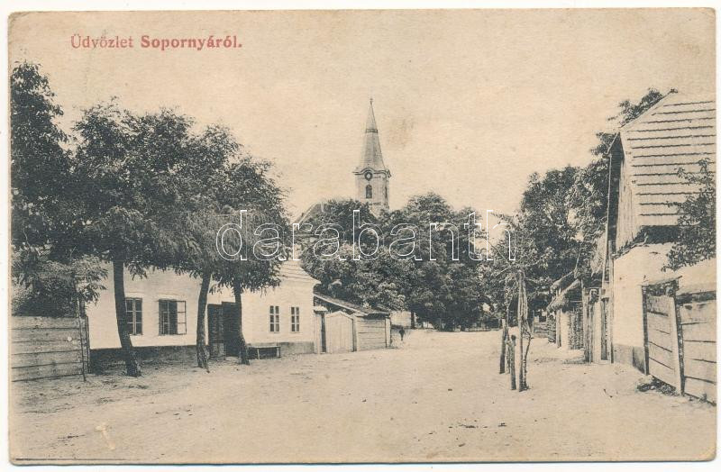 Sopornya, Soporna; utca, templom. Demko J. fényképész / street view, c... https://www.darabanth.com/hu/508-Gyorsarveres/508.0/Kepeslapok/Felvidek~583/Sopornya-Soporna-utca-templom-Demko-J-fenykepesz-street-view-church-fl~II3441345