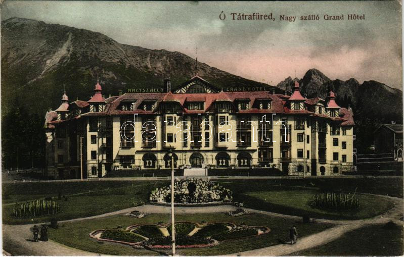 Leírás: Tátrafüred, Ótátrafüred, Altschmecks, Stary Smokovec (Magas-Tátra, Vysoké Tatry); Nagyszálló. Kertész Tódor kiadása / Grand Hotel