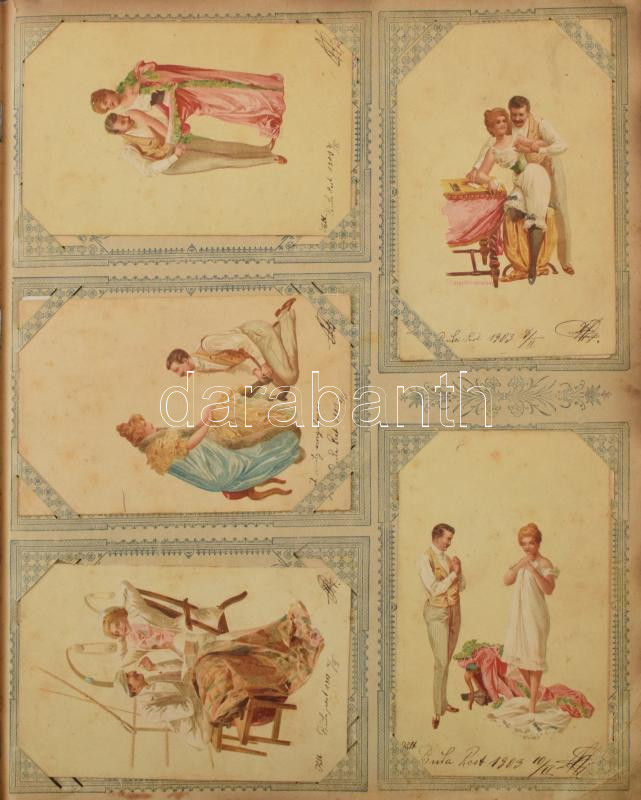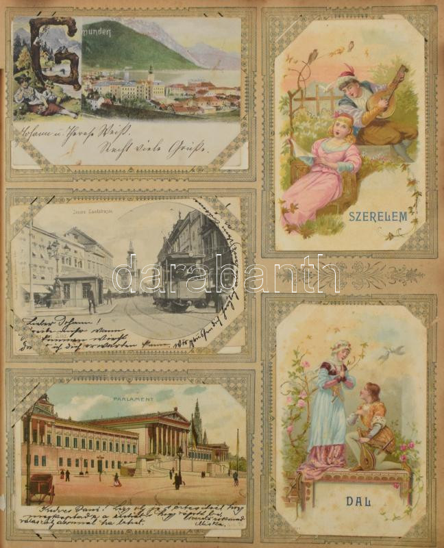 Képeslap gyűjtemény: ~300 db régi, főleg múlt századfordulós képeslap szecessziós albumban, benne rengeteg városkép, zsáner, üdvözlő, motívum lapok nagyon sok érdekességgel, ritkákkal. Gondosan megőrzött szép anyag nagyrészt 1 levelezésből. Érdemes megnézni!!