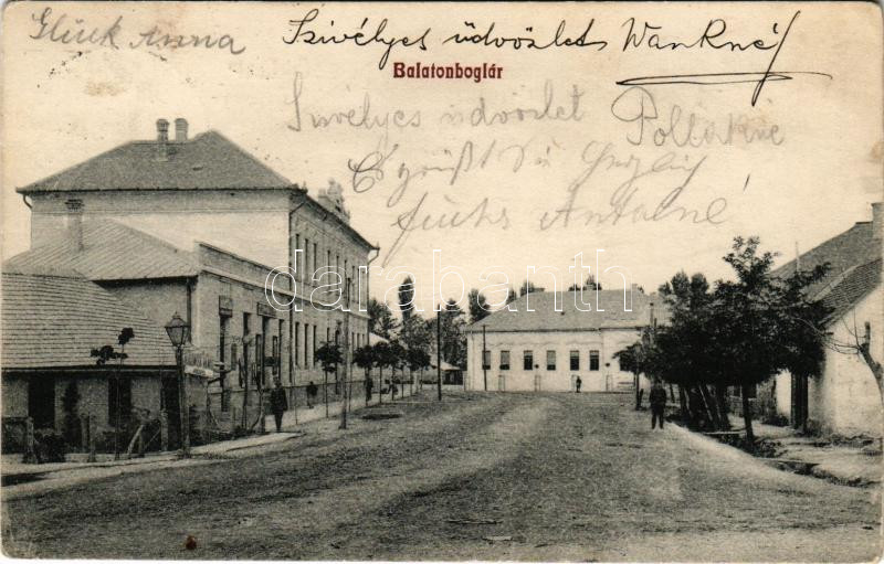 1911 Balatonboglár, utca, üzletek (ragasztónyom / glue marks) https://www.darabanth.com/hu/508-Gyorsarveres/508.0/Kepeslapok/Magyarorszag~581/1911-Balatonboglar-utca-uzletek-ragasztonyom-glue-marks~II3443109