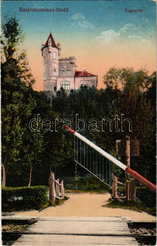 Leírás: 1917 Balatonszemes, Bagolyvár, villa, vasúti sorompó, átjáró (kis szakadás / small tear)