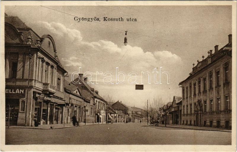 Gyöngyös, Kossuth utca, üzletek, kifőzde https://www.darabanth.com/hu/508-Gyorsarveres/508.0/Kepeslapok/Magyarorszag~581/Gyongyos-Kossuth-utca-uzletek-kifozde~II3437646