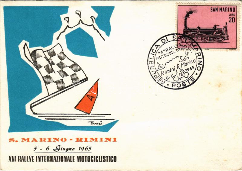 Leírás: XVI Rallye Internazionale Motociclistico S. Marino - Rimini 5-6 Giugno 1965 / XVI. International Motorcycle Rally S. Marino - Rimini + So. Stpl. (fa)
