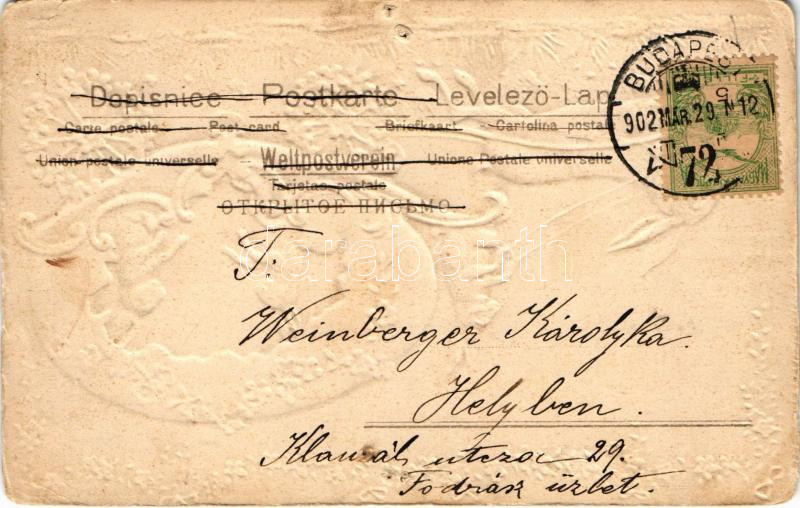 1902 Boldog húsvéti ünnepeket! Szecessziós-virágos dombornyomott litho... https://www.darabanth.com/hu/508-Gyorsarveres/508.0/Kepeslapok/Udvozlolapok-Unnepek~666/1902-Boldog-husveti-unnepeket-Szecesszios-viragos-dombornyomott-litho-udvozlolap-nyulhintC3~II3443034