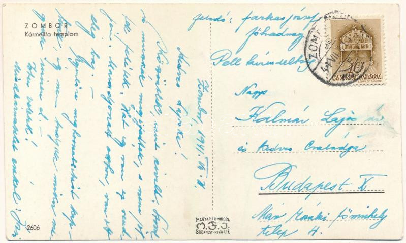 1941 Zombor, Sombor; Kármelita templom, kioszk / church, kiosk (EK) https://www.darabanth.com/hu/508-Gyorsarveres/508.0/Kepeslapok/Vajdasag~586/1941-Zombor-Sombor-Karmelita-templom-kioszk-church-kiosk-EK~II3437239