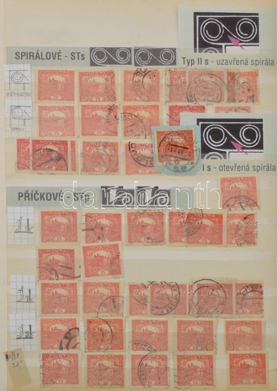 Leírás: Csehszlovákia sok száz Hradzsin bélyeg 7 berakólapon, 3 címlet, közte lemezhibák, árnyalatok bélyegzések