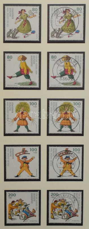 Leírás: NSZK 1975-1979 párhuzamos postatiszta és bélyegzett gyűjtemény falcmentes előnyomott albumban