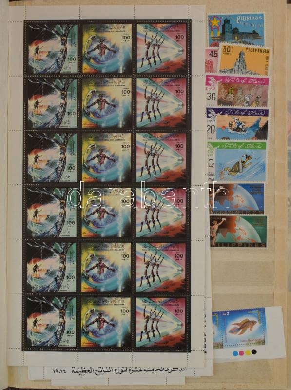 Nagyrészt postatiszta és tengerentúli tétel nagyon sok motívummal, rengeteg új bélyeggel 8 db A/4 berakóban. Rendkívül érdekes vegyes anyag, nagy gyűjtemény kiegészítésére vagy továbbadásra kiváló.
