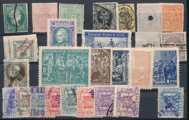 Leírás: Spanyol kis tétel stecklapon, benne távírda, jótékonyság, stb. bélyegek