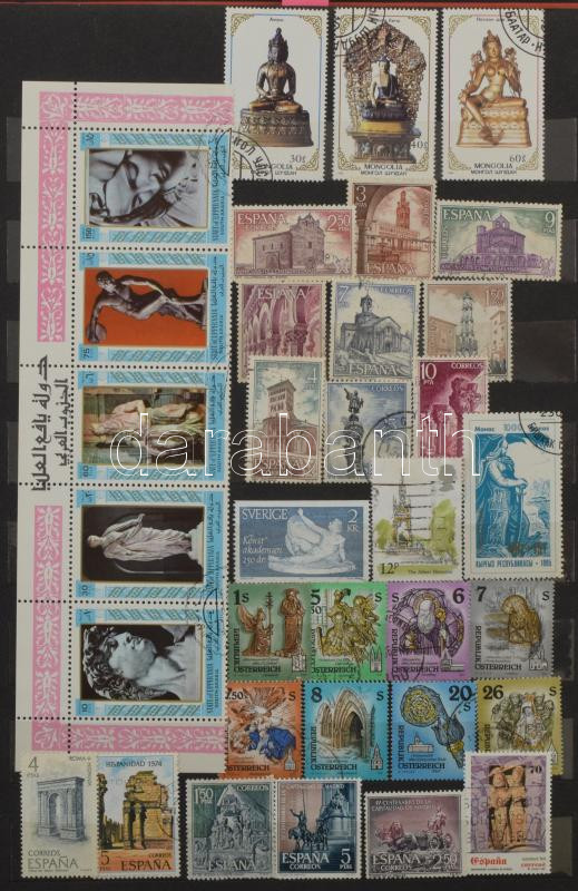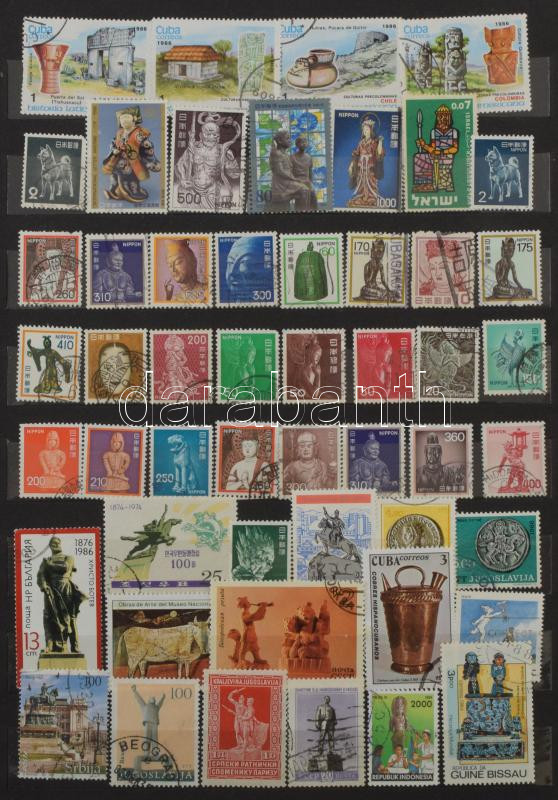 Szobrok, reliefek az antikvitásból és a modern időkből, motívum tétel több mint 500 klf bélyeggel, 12 db blokkal és kisívvel, 8 lapos, A/4-es, jó minőségű berakóban