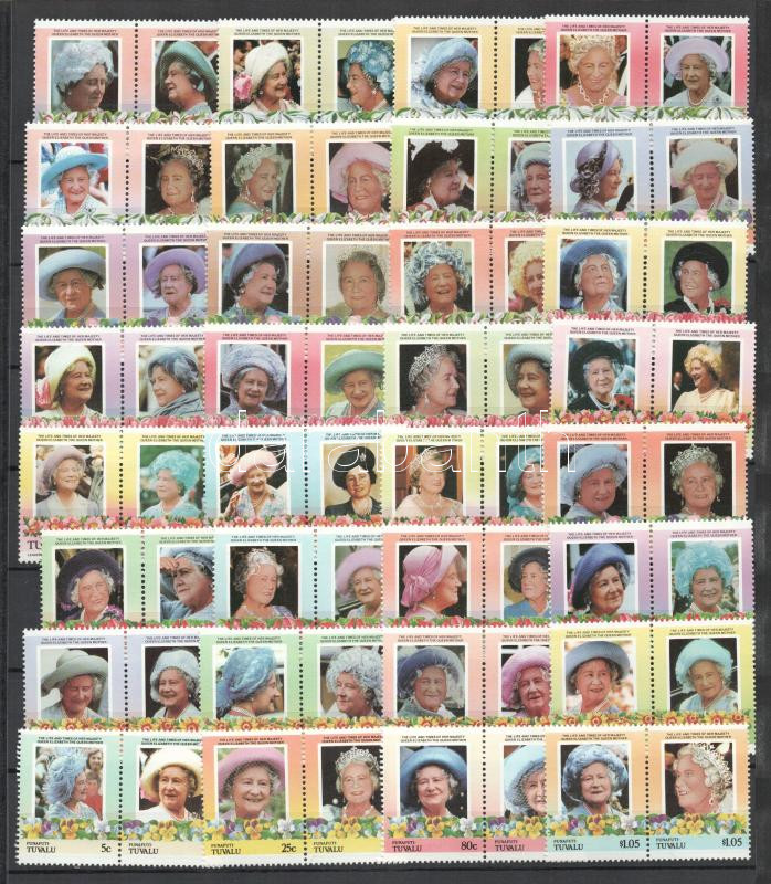 Leírás: Tuvalu 64 db bélyeg II. Erzsébet királyné édesanyjának többféle portréjával, berakólapon