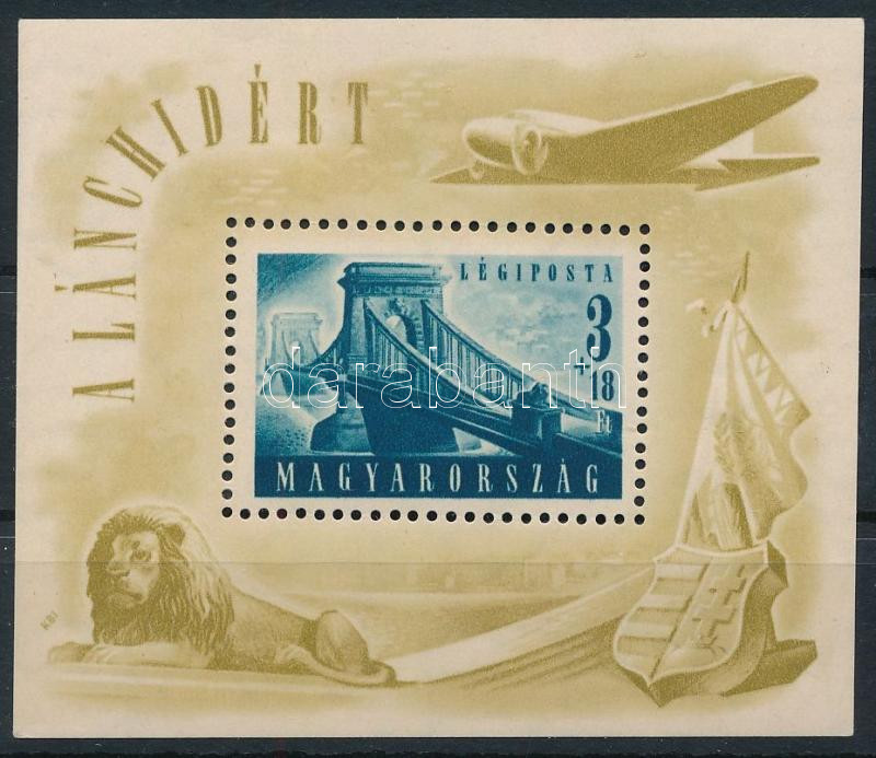 1948 Lánchíd (II.) blokk (35.000) https://www.darabanth.com/hu/508-Gyorsarveres/508.0/Kiemelt-magyar-filatelia-tetelek-es-gyujtemenyek/Egyes-magyar-kiadasok-rendkivul-alacsony-kikialtasi-aron~61/1948-Lanchid-II-blokk-35000~II3437273