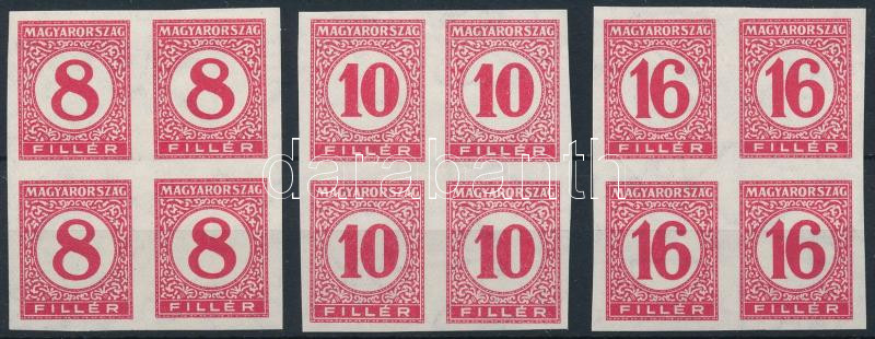 Leírás: 1929 Pengő-filléres portó II. 3 értékes vágott sor vékony papíron négyestömbökben (60.000)