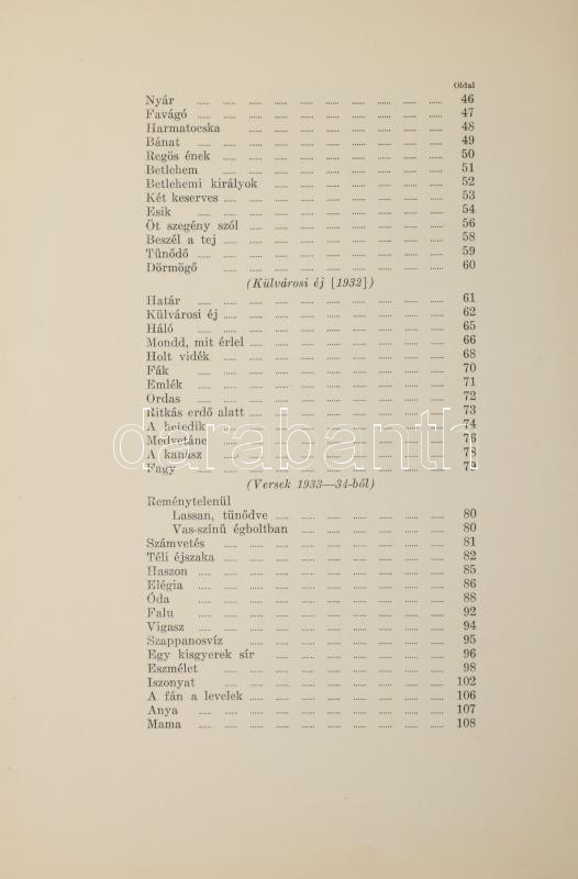 Bp.,1934., Révai, 108+4 p. Első kiadás. Számozatlan példány!