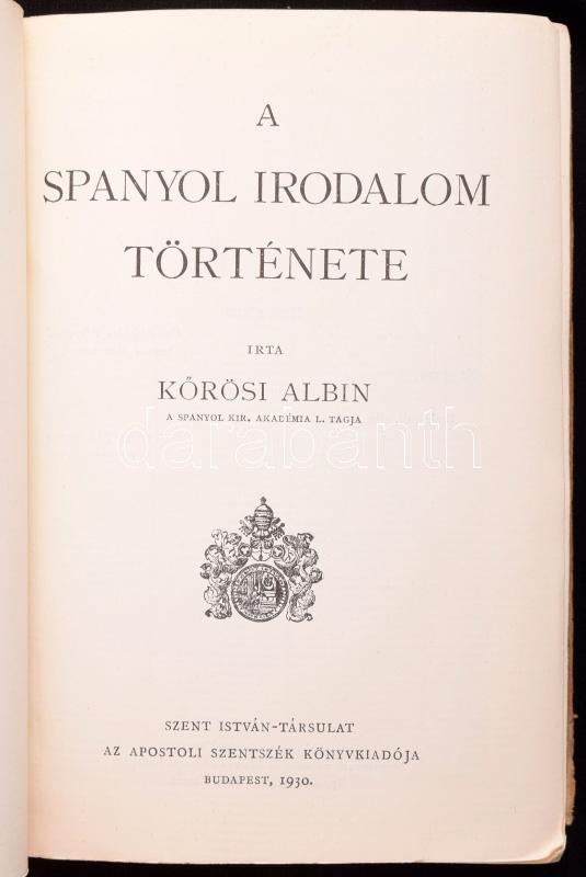 Körösi Albin: A spanyol irodalom története. Bp., 1930, Szent István Tá... https://www.darabanth.com/hu/508-Gyorsarveres/508.0/Konyvek/Konyvek-Egyeb-ritkasagok~761/Korosi-Albin-A-spanyol-irodalom-tortenete-Bp-1930-Szent-Istvan-Tarsulat-Kiadoi-papirkC3~II3441755