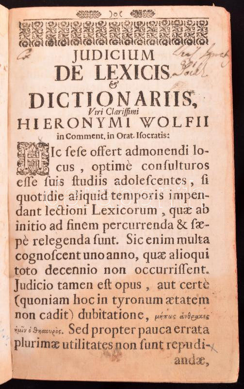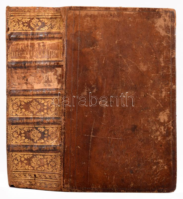 Szenci Molnár Albert: Dictionarium Ungarico-Latino-Germanicum. Pars II. Innumeris vocibus Ungaricis Formulisque loquendi Latiné redditis, Nunc quartá vice locupletatum. Cui inspersa sunt usitatoria Proverbia Ungarica, cum aequipollentibus Adagiis Latinis: Quae omnia sub initiali, vel praecipua Adagionis Ungaricae voce facilé reperiuntur. Autore: Alberto Molnar Szenciensi. Norimbergae [Nürnberg], 1708.,Sumptibus Martini Endteri, 4+958 p. Korabeli aranyozott álbordás gerincű egészbőr-kötés, festett lapélekkel, kopott borítóval, foltos lapokkal, a címlapon bejegyzésekkel, két kijáró lappal (103/104,105/106), az utolsó lap szakadt és a felső sarka restaurált. + Imre Mihály: Szenci Molnár Albert Dictionarium Latinoungaricum Nürnberg, 1604. Bibliotheca Hungarica Antiqua XX. Bp., 1990, MTA Irodalomtudományi Intézete, 100 p.