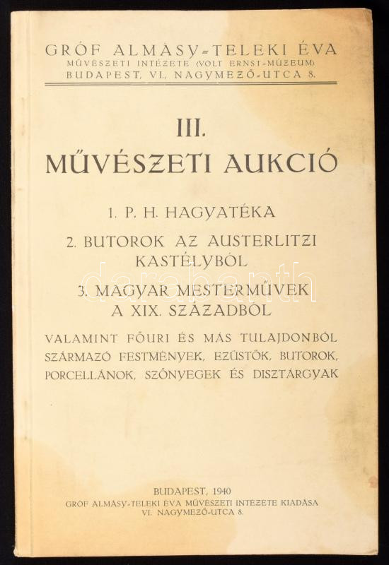1940 Gróf Almásy Teleki Éva Művészeti Intézete - Volt Ernst Múzeum III... https://www.darabanth.com/hu/508-Gyorsarveres/508.0/Konyvek/Konyvek-Epiteszet-muveszet~747/1940-Grof-Almasy-Teleki-Eva-Muveszeti-Intezete-Volt-Ernst-Muzeum-III-muveszeti-aukcio-k~II3436449