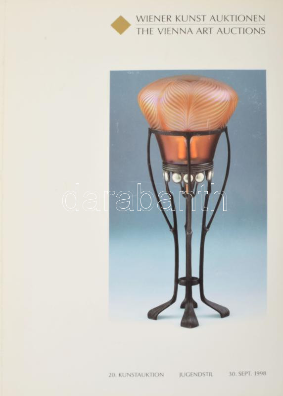 1998 Wiener Kunst Auktionen. Jugendstil [Szecessziós] anyaggal. https://www.darabanth.com/hu/508-Gyorsarveres/508.0/Konyvek/Konyvek-Epiteszet-muveszet~747/1998-Wiener-Kunst-Auktionen-Jugendstil-Szecesszios-anyaggal~II3442127