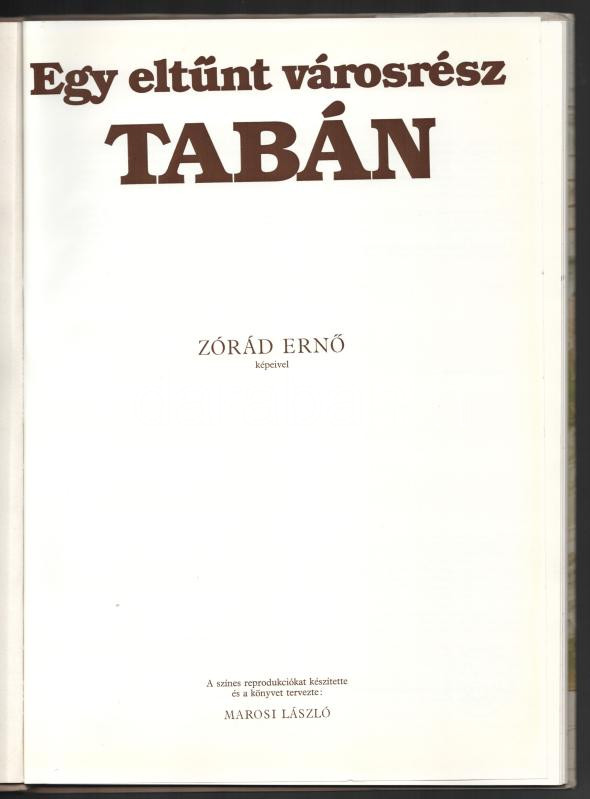 Tabán. Egy eltűnt városrész. Zórád Ernő képeivel. Összeáll.: Vargha Balázs. Bp., 1983, Táltos. Magyar nyelven, a képeknél magyar, angol, német és francia nyelvű feliratokkal. Kiadói egészvászon-kötés, kiadói papír védőborítóban.