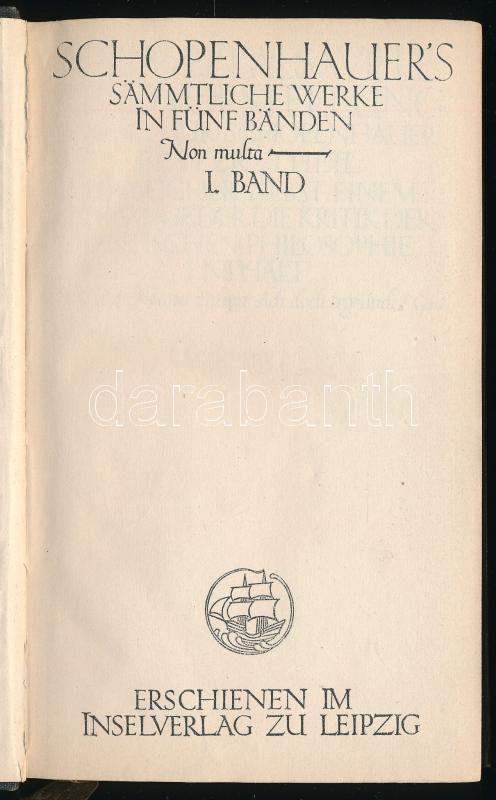 Schopenhauer's Sämmtliche Werke in fünf Bänden. I. Band. Leipzig,... https://www.darabanth.com/hu/508-Gyorsarveres/508.0/Konyvek/Konyvek-Idegen-nyelvu-konyvek~757/Schopenhauers-Sammtliche-Werke-in-funf-Banden-I-Band-Leipzig-Inselverlag-Kiadoi-egeszvas~II3439318